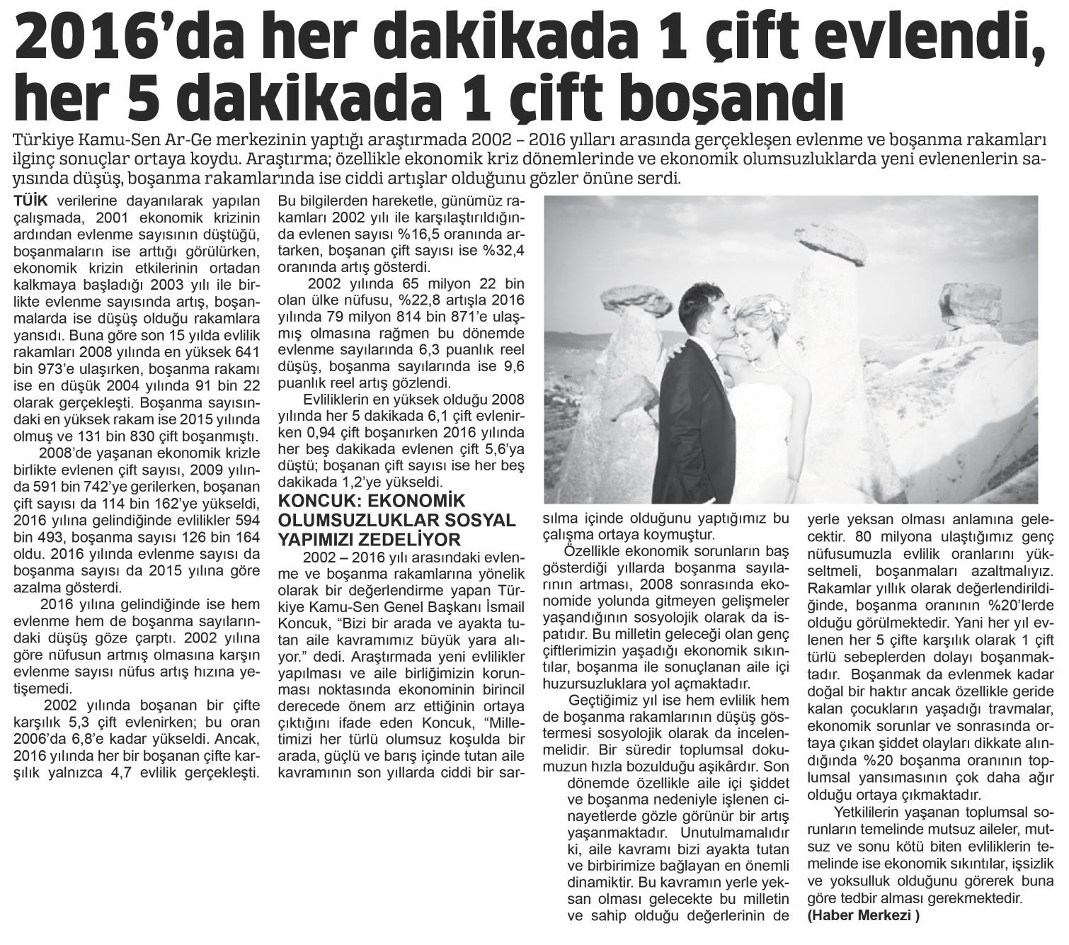 2016`da Her Dakikada Bir Çift Evlendi, Her Beş Dakikada Bir Çift Boşandı – Güçlü Anadolu