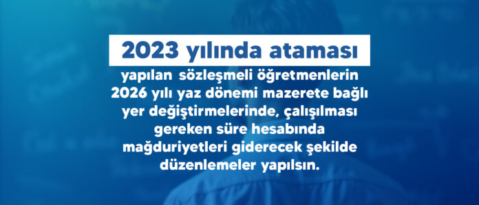 Bu bağlamda, Türk Eğitim Sen olarak, 2026 yılı yaz dönemi mazerete bağlı yer değiştirmelerde, çalışılması gereken süre hesabında mağduriyetleri giderecek şekilde gerekli düzenlemelerin yapılması hususunda Milli Eğitim Bakanlığı’na yazılı talepte bulunduk.