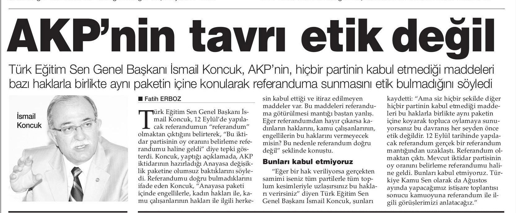 AKP’nin Tavrı Etik Değil – Yeniçağ