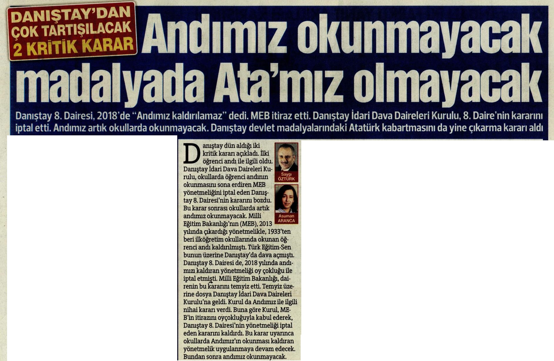 Andımız Okunmayacak Madalyada Ata`mız Olmayacak – Sözcü Basında TES 13 Mart 2021 FacebookTwitterWhatsAppLinkedin A- A A+ Son Haberler Haberler YÖNETİCİ GÖREVLENDİRME YÖNETMELİĞİNE DAVA AÇTIK Türk Eğitim Sen, 30.01.2026 tarih ve 33153 sayılı resmi gazete yayımlanan Milli Eğitim Bakanlığı... 12 Şubat 2026 Haberler IRAK TÜRKMEN EĞİTİMCİLERİNDEN GENEL BAŞKAN TALİP GEYLAN’A ANLAMLI ZİYARET Irak Türkmen Eğitimciler Öğretmen Örgütü Başkanı Ali Gülboy ve beraberindeki heyet, 11 Şubat 2026... 11 Şubat 2026 Haberler ÖZEL EĞİTİM ANAOKULLARINDA GÖREV YAPAN ÖZEL EĞİTİM ÖĞRETMENLERİNE DE HAFTADA 1 SAAT EK DERS... 11 Şubat 2026 Haberler TÜRK EĞİTİM SEN ÜYELERİNE;MEB EKYS 2026 YAZILI SINAVINA HAZIRLIK DUYURUSU 2026 yılı Millî Eğitim Bakanlığı Eğitim Kurumlarına Yönetici Seçme Sınavı (MEB EKYS) kapsamında uygulanacak... 10 Şubat 2026