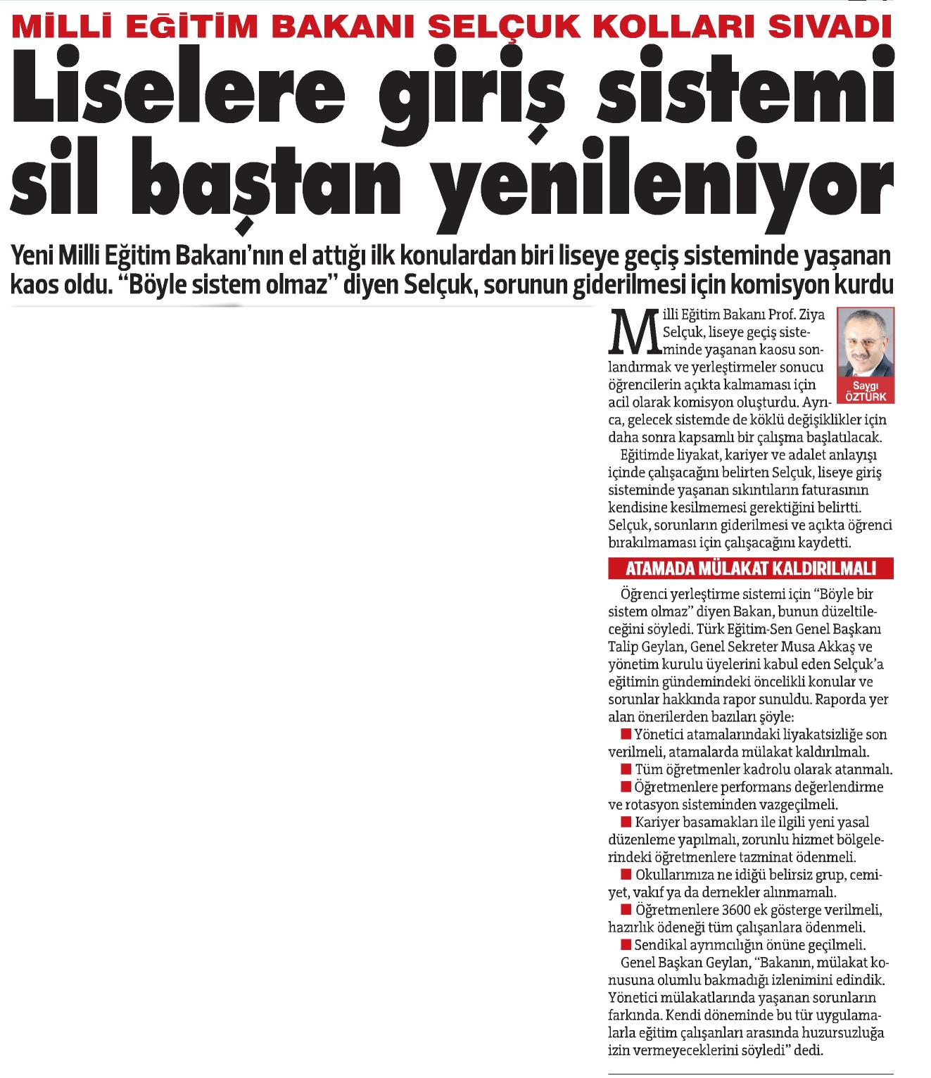 Atamada Mülakat Kaldırılmalı – Sözcü Basında TES 18 Temmuz 2018 FacebookTwitterWhatsAppLinkedin A- A A+ Son Haberler Tüm Haberler NORM FAZLASI RE’SEN ATAMADA YENİ BİR YÜRÜTMEYİ DURDURMA KARARI Sendikamız üyesinin, norm kadro fazlası olduğu gerekçesiyle re’sen, aile birliği mazeretine uygun olmayan bir... 17 Şubat 2026 Haberler GENEL BAŞKAN TALİP GEYLAN GÜVEN TAZELEDİ 15 Şubat 2026 tarihinde Ankara’da yapılan Türk Eğitim-Sen 8. Olağan Merkez Genel Kurulu'nda mevcut... 15 Şubat 2026 Haberler 8. OLAĞAN MERKEZ GENEL KURULUMUZ COŞKU İLE GERÇEKLEŞTİ Türk Eğitim Sen 8. Olağan Merkez Genel Kurulu, 15 Şubat 2026 tarihinde Ankara’da coşku... 15 Şubat 2026 Haberler YÖNETİCİ GÖREVLENDİRME YÖNETMELİĞİNE DAVA AÇTIK Türk Eğitim Sen, 30.01.2026 tarih ve 33153 sayılı resmi gazete yayımlanan Milli Eğitim Bakanlığı... 12 Şubat 2026