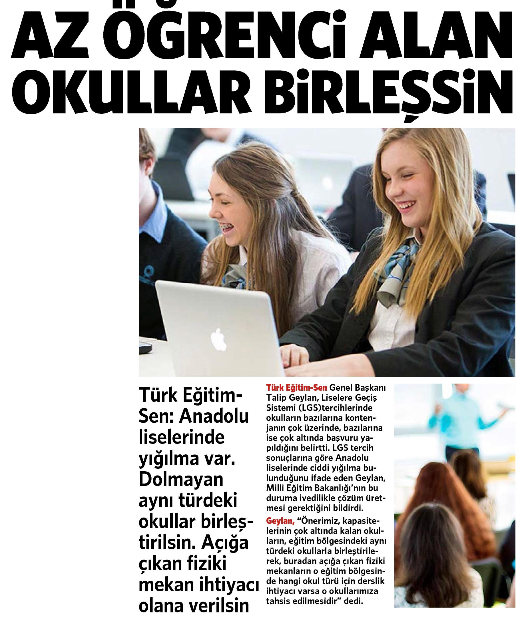 Az Öğrenci Alan Okullar Birleşsin – Milliyet Express Basında TES 31 Temmuz 2019 FacebookTwitterWhatsAppLinkedin A- A A+ Son Haberler Haberler GENEL BAŞKAN TALİP GEYLAN GÜVEN TAZELEDİ 15 Şubat 2026 tarihinde Ankara’da yapılan Türk Eğitim-Sen 8. Olağan Merkez Genel Kurulu'nda mevcut... 15 Şubat 2026 Haberler 8. OLAĞAN MERKEZ GENEL KURULUMUZ COŞKU İLE GERÇEKLEŞTİ Türk Eğitim Sen 8. Olağan Merkez Genel Kurulu, 15 Şubat 2026 tarihinde Ankara’da coşku... 15 Şubat 2026 Haberler YÖNETİCİ GÖREVLENDİRME YÖNETMELİĞİNE DAVA AÇTIK Türk Eğitim Sen, 30.01.2026 tarih ve 33153 sayılı resmi gazete yayımlanan Milli Eğitim Bakanlığı... 12 Şubat 2026 Haberler IRAK TÜRKMEN EĞİTİMCİLERİNDEN GENEL BAŞKAN TALİP GEYLAN’A ANLAMLI ZİYARET Irak Türkmen Eğitimciler Öğretmen Örgütü Başkanı Ali Gülboy ve beraberindeki heyet, 11 Şubat 2026... 11 Şubat 2026