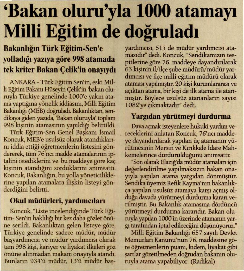 Bakan Oluru’yla 1000 Atamayı Milli Eğitim de Doğruladı – Radikal