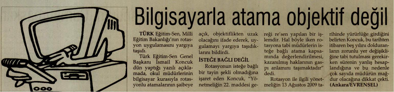 Bilgisayarla Atama Objektif Değil – Günlük Evrensel Basında TES 25 Temmuz 2010 FacebookTwitterWhatsAppLinkedin A- A A+ Son Haberler Haberler TÜRK DÜNYASINDA EĞİTİM ALANINDA İŞBİRLİĞİ SÜRÜYOR Türk Eğitim-Sen ve Uluslararası Avrasya Eğitim Sendikaları Birliği Genel Başkanı Talip Geylan ile Kırgızistan... 19 Şubat 2026 Tüm Haberler NORM FAZLASI RE’SEN ATAMADA YENİ BİR YÜRÜTMEYİ DURDURMA KARARI Sendikamız üyesinin, norm kadro fazlası olduğu gerekçesiyle re’sen, aile birliği mazeretine uygun olmayan bir... 17 Şubat 2026 Haberler GENEL BAŞKAN TALİP GEYLAN GÜVEN TAZELEDİ 15 Şubat 2026 tarihinde Ankara’da yapılan Türk Eğitim-Sen 8. Olağan Merkez Genel Kurulu'nda mevcut... 15 Şubat 2026 Haberler 8. OLAĞAN MERKEZ GENEL KURULUMUZ COŞKU İLE GERÇEKLEŞTİ Türk Eğitim Sen 8. Olağan Merkez Genel Kurulu, 15 Şubat 2026 tarihinde Ankara’da coşku... 15 Şubat 2026