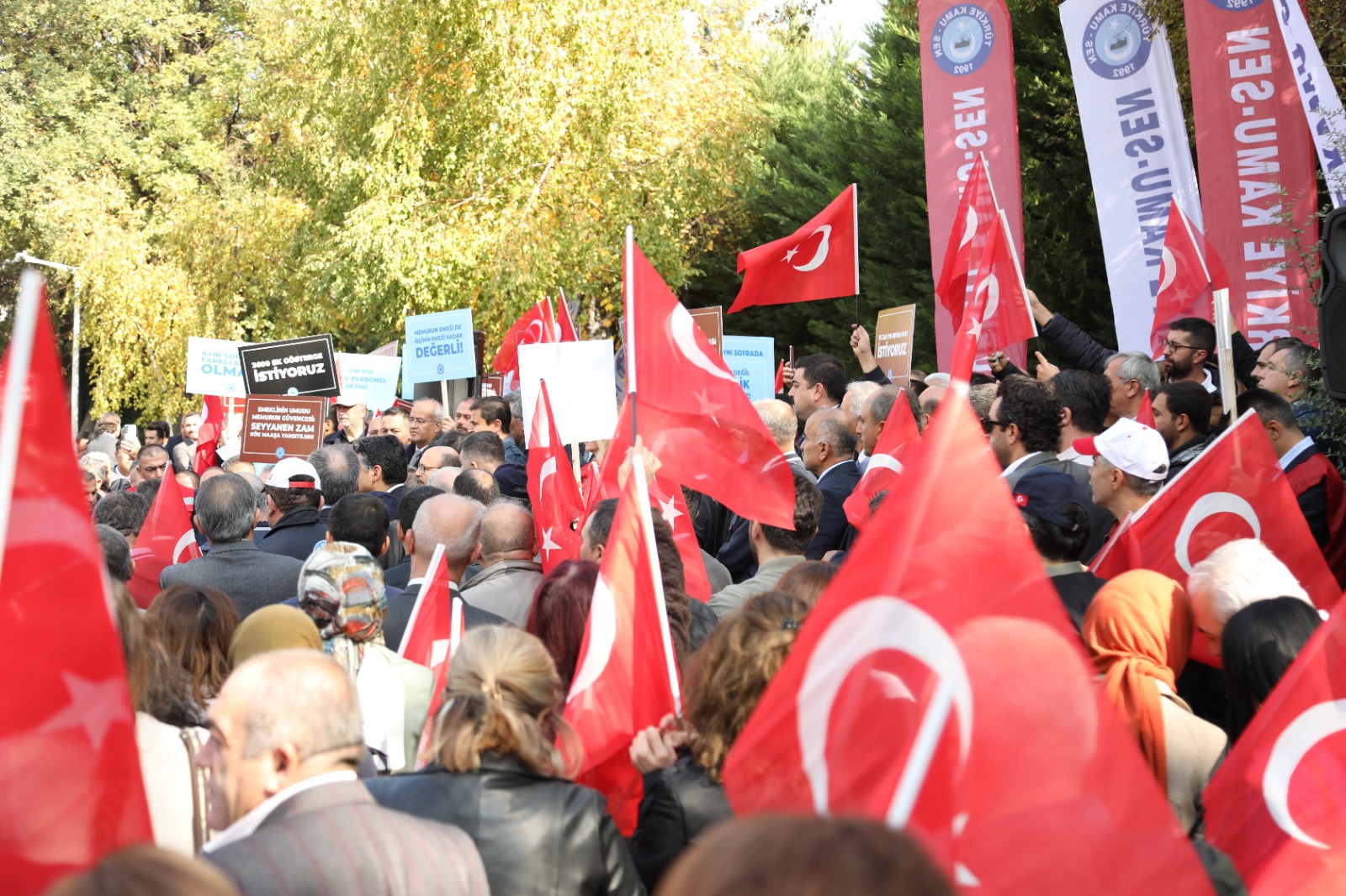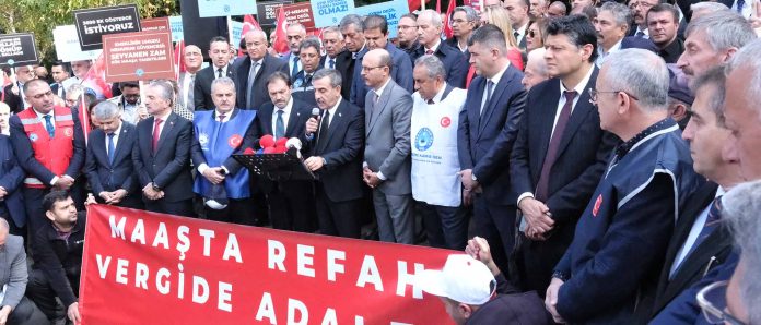 “Bugün burada, Türkiye Büyük Millet Meclisi’nin önünde; alın terimizin, emeğimizin, hakkımızın sesi olmak için toplandık! 2026 yılı bütçesi cuma günü Meclis’te görüşülmeye başlanacak ama o bütçede memur yok, emekli yok, alın teri yok! Var olan; rakamların, hedeflerin ve hayallerin ardına gizlenmiş bir adaletsizliktir. Açıklanan son rakamlardan görüyoruz ki enflasyon yeniden tırmanışa geçti, mutfakta yangın büyüyor!