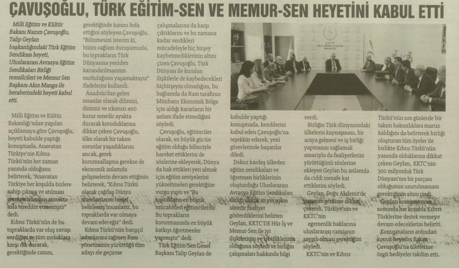 Çavuşoğlu, Türk Eğitim-Sen ve Memur Sen Heyetini Kabul Etti – Hakikat Basında TES 13 Haziran 2019 FacebookTwitterWhatsAppLinkedin A- A A+ Son Haberler Tüm Haberler NORM FAZLASI RE’SEN ATAMADA YENİ BİR YÜRÜTMEYİ DURDURMA KARARI Sendikamız üyesinin, norm kadro fazlası olduğu gerekçesiyle re’sen, aile birliği mazeretine uygun olmayan bir... 17 Şubat 2026 Haberler GENEL BAŞKAN TALİP GEYLAN GÜVEN TAZELEDİ 15 Şubat 2026 tarihinde Ankara’da yapılan Türk Eğitim-Sen 8. Olağan Merkez Genel Kurulu'nda mevcut... 15 Şubat 2026 Haberler 8. OLAĞAN MERKEZ GENEL KURULUMUZ COŞKU İLE GERÇEKLEŞTİ Türk Eğitim Sen 8. Olağan Merkez Genel Kurulu, 15 Şubat 2026 tarihinde Ankara’da coşku... 15 Şubat 2026 Haberler YÖNETİCİ GÖREVLENDİRME YÖNETMELİĞİNE DAVA AÇTIK Türk Eğitim Sen, 30.01.2026 tarih ve 33153 sayılı resmi gazete yayımlanan Milli Eğitim Bakanlığı... 12 Şubat 2026