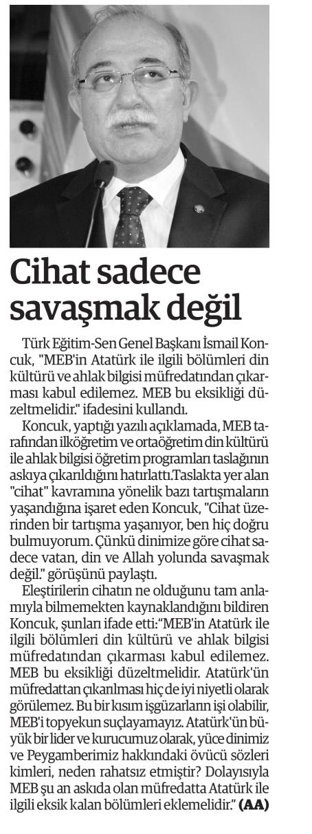 Cihat sadece Savaşmak Değil – Gazete Harbi Basında TES 25 Temmuz 2017 FacebookTwitterWhatsAppLinkedin A- A A+ Son Haberler Haberler TÜRK DÜNYASINDA EĞİTİM ALANINDA İŞBİRLİĞİ SÜRÜYOR Türk Eğitim-Sen ve Uluslararası Avrasya Eğitim Sendikaları Birliği Genel Başkanı Talip Geylan ile Kırgızistan... 19 Şubat 2026 Tüm Haberler NORM FAZLASI RE’SEN ATAMADA YENİ BİR YÜRÜTMEYİ DURDURMA KARARI Sendikamız üyesinin, norm kadro fazlası olduğu gerekçesiyle re’sen, aile birliği mazeretine uygun olmayan bir... 17 Şubat 2026 Haberler GENEL BAŞKAN TALİP GEYLAN GÜVEN TAZELEDİ 15 Şubat 2026 tarihinde Ankara’da yapılan Türk Eğitim-Sen 8. Olağan Merkez Genel Kurulu'nda mevcut... 15 Şubat 2026 Haberler 8. OLAĞAN MERKEZ GENEL KURULUMUZ COŞKU İLE GERÇEKLEŞTİ Türk Eğitim Sen 8. Olağan Merkez Genel Kurulu, 15 Şubat 2026 tarihinde Ankara’da coşku... 15 Şubat 2026