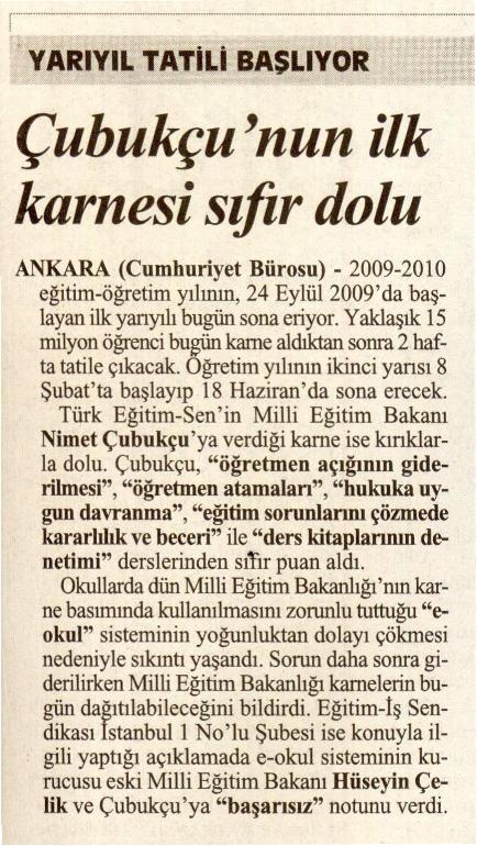 Çubukçu’nun Karnesi Sıfır Dolu – Cumhuriyet Basında TES 22 Ocak 2010 FacebookTwitterWhatsAppLinkedin A- A A+ Son Haberler Tüm Haberler NORM FAZLASI RE’SEN ATAMADA YENİ BİR YÜRÜTMEYİ DURDURMA KARARI Sendikamız üyesinin, norm kadro fazlası olduğu gerekçesiyle re’sen, aile birliği mazeretine uygun olmayan bir... 17 Şubat 2026 Haberler GENEL BAŞKAN TALİP GEYLAN GÜVEN TAZELEDİ 15 Şubat 2026 tarihinde Ankara’da yapılan Türk Eğitim-Sen 8. Olağan Merkez Genel Kurulu'nda mevcut... 15 Şubat 2026 Haberler 8. OLAĞAN MERKEZ GENEL KURULUMUZ COŞKU İLE GERÇEKLEŞTİ Türk Eğitim Sen 8. Olağan Merkez Genel Kurulu, 15 Şubat 2026 tarihinde Ankara’da coşku... 15 Şubat 2026 Haberler YÖNETİCİ GÖREVLENDİRME YÖNETMELİĞİNE DAVA AÇTIK Türk Eğitim Sen, 30.01.2026 tarih ve 33153 sayılı resmi gazete yayımlanan Milli Eğitim Bakanlığı... 12 Şubat 2026