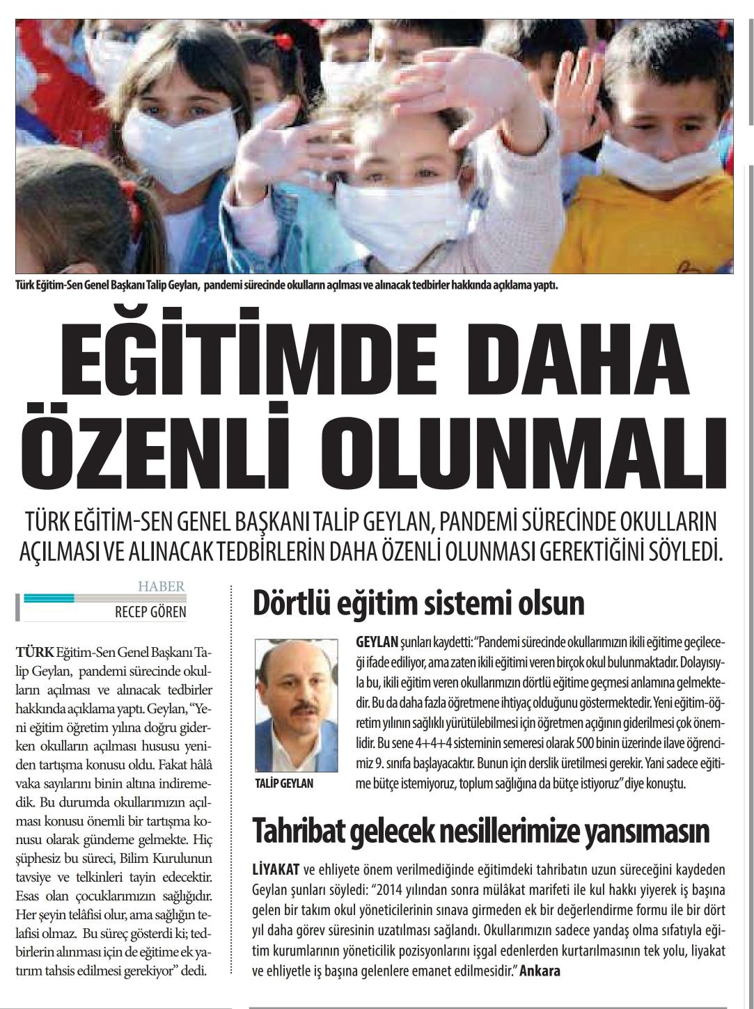 Eğitimde Daha Özenli Olunmalı – Yeni Asya