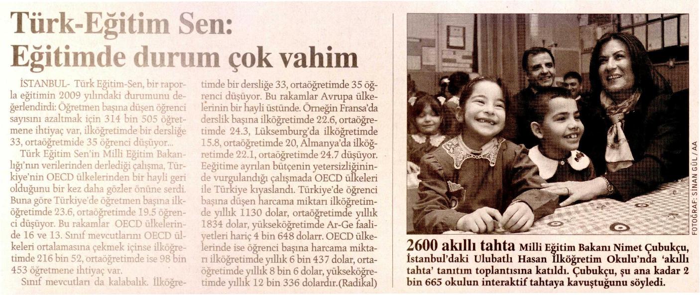 Eğitimde Durum Çok Vahim – Radikal Basında TES 3 Ocak 2010 FacebookTwitterWhatsAppLinkedin A- A A+ Son Haberler Tüm Haberler NORM FAZLASI RE’SEN ATAMADA YENİ BİR YÜRÜTMEYİ DURDURMA KARARI Sendikamız üyesinin, norm kadro fazlası olduğu gerekçesiyle re’sen, aile birliği mazeretine uygun olmayan bir... 17 Şubat 2026 Haberler GENEL BAŞKAN TALİP GEYLAN GÜVEN TAZELEDİ 15 Şubat 2026 tarihinde Ankara’da yapılan Türk Eğitim-Sen 8. Olağan Merkez Genel Kurulu'nda mevcut... 15 Şubat 2026 Haberler 8. OLAĞAN MERKEZ GENEL KURULUMUZ COŞKU İLE GERÇEKLEŞTİ Türk Eğitim Sen 8. Olağan Merkez Genel Kurulu, 15 Şubat 2026 tarihinde Ankara’da coşku... 15 Şubat 2026 Haberler YÖNETİCİ GÖREVLENDİRME YÖNETMELİĞİNE DAVA AÇTIK Türk Eğitim Sen, 30.01.2026 tarih ve 33153 sayılı resmi gazete yayımlanan Milli Eğitim Bakanlığı... 12 Şubat 2026