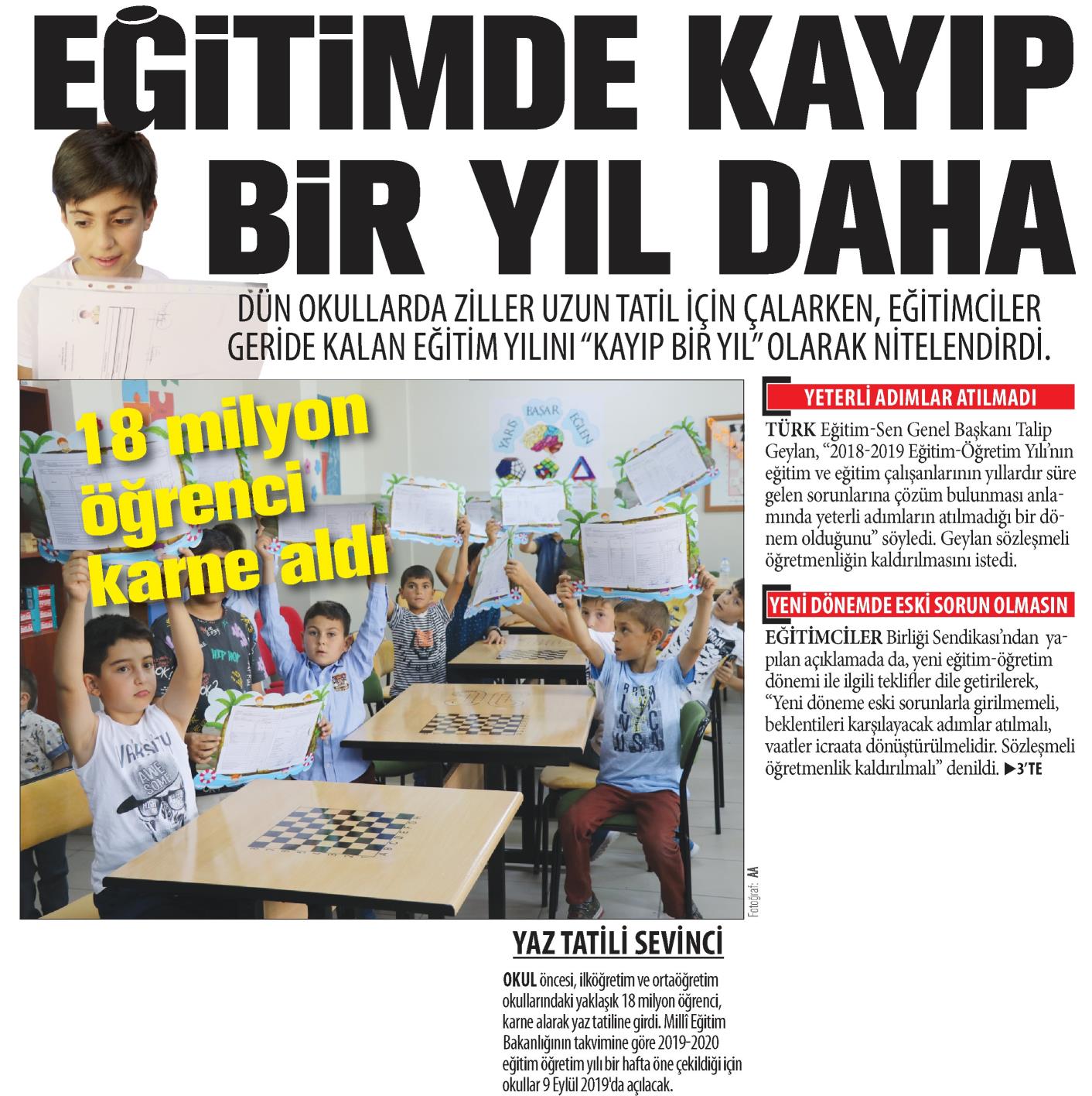 Eğitimde Kayıp Bir Yıl Daha – Yeni Asya Basında TES 15 Haziran 2019 FacebookTwitterWhatsAppLinkedin A- A A+ Son Haberler Tüm Haberler NORM FAZLASI RE’SEN ATAMADA YENİ BİR YÜRÜTMEYİ DURDURMA KARARI Sendikamız üyesinin, norm kadro fazlası olduğu gerekçesiyle re’sen, aile birliği mazeretine uygun olmayan bir... 17 Şubat 2026 Haberler GENEL BAŞKAN TALİP GEYLAN GÜVEN TAZELEDİ 15 Şubat 2026 tarihinde Ankara’da yapılan Türk Eğitim-Sen 8. Olağan Merkez Genel Kurulu'nda mevcut... 15 Şubat 2026 Haberler 8. OLAĞAN MERKEZ GENEL KURULUMUZ COŞKU İLE GERÇEKLEŞTİ Türk Eğitim Sen 8. Olağan Merkez Genel Kurulu, 15 Şubat 2026 tarihinde Ankara’da coşku... 15 Şubat 2026 Haberler YÖNETİCİ GÖREVLENDİRME YÖNETMELİĞİNE DAVA AÇTIK Türk Eğitim Sen, 30.01.2026 tarih ve 33153 sayılı resmi gazete yayımlanan Milli Eğitim Bakanlığı... 12 Şubat 2026