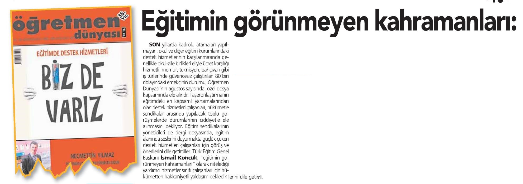 Eğitimin Görünmeyen Kahramanları – Aydınlık Basında TES 9 Ağustos 2017 FacebookTwitterWhatsAppLinkedin A- A A+ Son Haberler Haberler TÜRK DÜNYASINDA EĞİTİM ALANINDA İŞBİRLİĞİ SÜRÜYOR Türk Eğitim-Sen ve Uluslararası Avrasya Eğitim Sendikaları Birliği Genel Başkanı Talip Geylan ile Kırgızistan... 19 Şubat 2026 Tüm Haberler NORM FAZLASI RE’SEN ATAMADA YENİ BİR YÜRÜTMEYİ DURDURMA KARARI Sendikamız üyesinin, norm kadro fazlası olduğu gerekçesiyle re’sen, aile birliği mazeretine uygun olmayan bir... 17 Şubat 2026 Haberler GENEL BAŞKAN TALİP GEYLAN GÜVEN TAZELEDİ 15 Şubat 2026 tarihinde Ankara’da yapılan Türk Eğitim-Sen 8. Olağan Merkez Genel Kurulu'nda mevcut... 15 Şubat 2026 Haberler 8. OLAĞAN MERKEZ GENEL KURULUMUZ COŞKU İLE GERÇEKLEŞTİ Türk Eğitim Sen 8. Olağan Merkez Genel Kurulu, 15 Şubat 2026 tarihinde Ankara’da coşku... 15 Şubat 2026