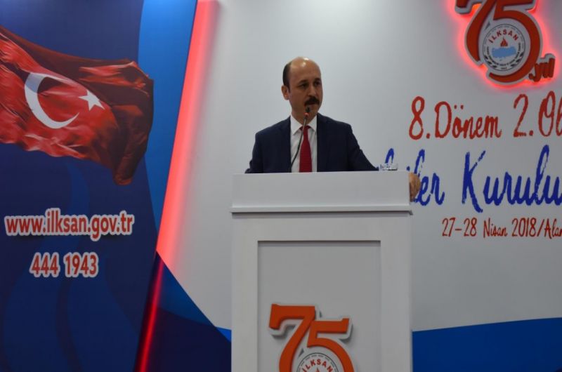 Bir konuşma yapan Genel Başkan Talip Geylan sözlerine İlksan Yönetim Kurulu Başkanı Tuncer Yılmaz başta olmak üzere İlksan yönetim ve denetleme kurulu üyelerini başarılı çalışmalarından dolayı kutlayarak başladı. İlksan Yönetim ve Denetleme Kuruluna şeffaf ve adil çalışmaları, İlksan üyelerinin hak ve menfaatlerini en iyi şekilde temsil etmelerinden dolayı teşekkürlerini ileten Geylan şunları söyledi: “Sayın Müsteşar Yardımcısı konuşmasında İlksan’ın çalkantılı dönemlerinden bahsetti. Bilinsin ki o çalkantılı dönemler, Türk Eğitim-Sen’den önceki dönemlerdi. Hamdolsun 1996 yılından itibaren Türk Eğitim-Sen delegelerinin iradesiyle İlksan’da yönetime dahil olan eğitim çalışanları her dönem yüzümüzü ağarttılar. Türk Eğitim-Sen 1996 yılında 3 milyon TL borçla sandığı devraldı. Bugün gelinen noktada ise İlksan, 1 milyar 254 milyon nakit varlığa sahiptir. Bu varlığı yüzde 78’i de yardım olarak üyelerin cebinde bulunuyor. Bildiğiniz gibi İlksan, üyelerine, evlenme, cenaze doğum v.b. birçok yardımda bulunuyor. 2017 yılındaki toplam aidat gelirinin yüzde 40 fazlası üyelerine sosyal yardım olarak aktarılmıştır. İşte tüm bunlar, yönetim başarısının somut göstergesidir.”