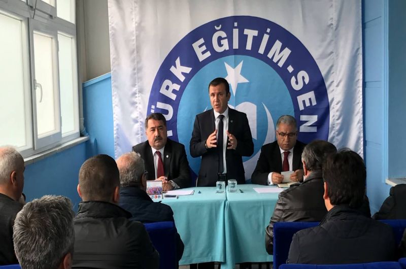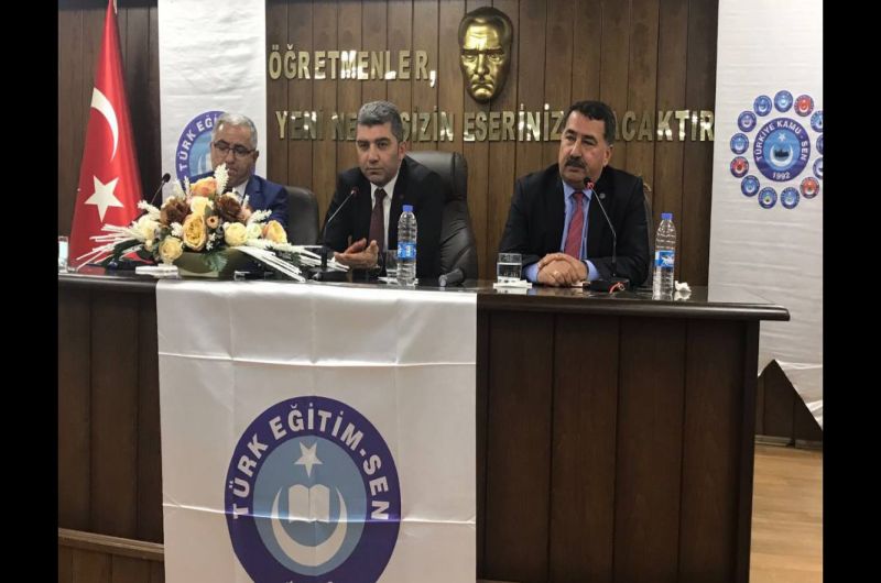 Şahindoğan sözlerini şöyle sürdürdü: “Okullarımızda görev yapan memur ve hizmetli arkadaşlarımız var. Milli eğitimin gerçekten en çok çilesini çeken kesimi bu insanlardır. Türk Eğitim-Sen olarak tüm eğitim çalışanlarına eşit ve eğitim çalışanlarının sorunlarını aynı derecede önemli gören bir sendikayız. Bizim için üniversitede ki profesörde okuldaki hizmetli de, öğretmen de aynı öneme sahiptir. Hizmetli arkadaşlarımızın görev tanımları ile ilgili çok ciddi sıkıntıları var. Hizmetli arkadaşlarımızın görev tanımları yapılırken, birçok görev tanımı yapıldıktan sonra müdürünün vereceği diğer işleri yapar deniliyor. Yani bu söz görev tanımını ucu açık hale getiriyor. Okul müdürünün vereceği hiçbir göreve itiraz edemez. Memur arkadaşlarımızı için de bu durum geçerli. İnsanların görev tanımları net olmalıdır. Görev tanımlarının netleştirilmesi için çalışmalarımız sürüyor. Hizmetli, memur arkadaşlarımızı eğitim çalışanlarının bir parçası olarak görüyoruz. Dolayısıyla öğretmen arkadaşlarımıza ödenen eğitim öğretime hazırlık ödeneğini mutlaka memur ve hizmetli arkadaşlara da ödenmesi gerekir. Bunun da mücadelesini hem toplu sözleşme masasında hem de bakanlık nezdinde yürütüyoruz. Bu arkadaşlarımız için görevde yükselme sınavlarının objektif mülakattan uzak hak edenin görevde yüksele bilmesini sağlayacak bir şekilde yapılmasını istiyoruz. Kurumların bu konuda özenli davranmasını işitiyoruz.”