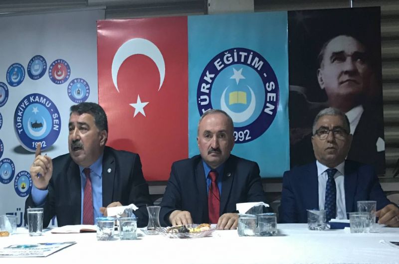 Toplantılarda bir konuşma yapan Genel Dış İlişkiler ve Basın Sekreteri Sami Özdemir hem ülke hem de kamu çalışanları olarak sıkıntılı bir süreçten geçtiğimizi kaydederek, “Türkiye Kamu-Sen ve Türk Eğitim-Sen mensuplarına uygulanan muamele bir terör örgütüne uygulanmadı. Bugün bile Türkiye Kamu-Sen üyesi isen herhangi bir idari görevde olma şansın yok. Peki Yenikapı ruhu nerede kaldı? 15 Temmuz’dan sonra bu hain darbe girişimine tepki gösteren ve meydanlara inen bir sendikanın mensuplarıyız. 15 Temmuz’dan sonra verilen mesajlara bakarak, ‘Şimdiye kadar yanlışlar oldu ama bundan sonra Türk siyaseti de nefes alır, yumuşama iklimi sürer’ diye düşünüyorduk. Ancak ne yazık ki Yenikapı ruhu Külliyenin duvarlarını aşamadı. Bugün hala ötekileştirme ve hor görme anlayışı devam ediyor” diye konuştu.