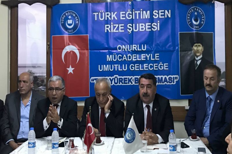 Türk Eğitim-Sen’in Atatürk’ün kurduğu Cumhuriyete, bayrağımıza dilimize, ezanımıza sahip çıkan herkese kapısının açık olduğunu ifade eden Özdemir, “Ayrıştırarak bir yere varamazsınız. Devire göre adam değil, her devirde adam olmak için mücadele eden bir kuruluşuz” dedi.