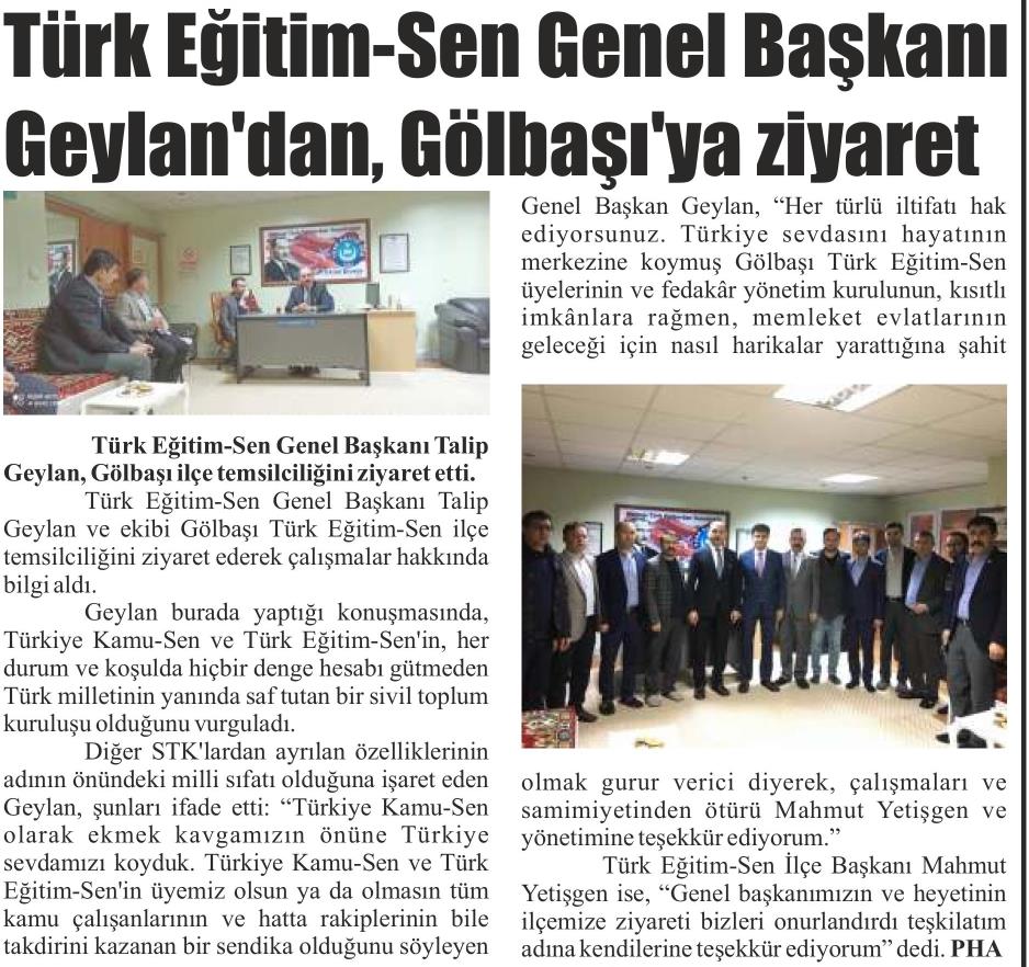 Geylan`dan Gölbaşı`na Ziyaret – Yeniyol Basında TES 13 Mart 2020 FacebookTwitterWhatsAppLinkedin A- A A+ Son Haberler Haberler GENEL BAŞKAN TALİP GEYLAN GÜVEN TAZELEDİ 15 Şubat 2026 tarihinde Ankara’da yapılan Türk Eğitim-Sen 8. Olağan Merkez Genel Kurulu'nda mevcut... 15 Şubat 2026 Haberler 8. OLAĞAN MERKEZ GENEL KURULUMUZ COŞKU İLE GERÇEKLEŞTİ Türk Eğitim Sen 8. Olağan Merkez Genel Kurulu, 15 Şubat 2026 tarihinde Ankara’da coşku... 15 Şubat 2026 Haberler YÖNETİCİ GÖREVLENDİRME YÖNETMELİĞİNE DAVA AÇTIK Türk Eğitim Sen, 30.01.2026 tarih ve 33153 sayılı resmi gazete yayımlanan Milli Eğitim Bakanlığı... 12 Şubat 2026 Haberler IRAK TÜRKMEN EĞİTİMCİLERİNDEN GENEL BAŞKAN TALİP GEYLAN’A ANLAMLI ZİYARET Irak Türkmen Eğitimciler Öğretmen Örgütü Başkanı Ali Gülboy ve beraberindeki heyet, 11 Şubat 2026... 11 Şubat 2026