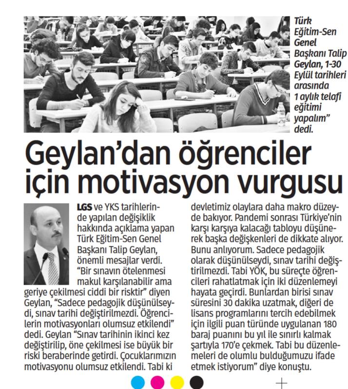 Geylan`dan Öğrenciler İçin Motivasyon Vurgusu – Türkgün Basında TES 7 Mayıs 2020 FacebookTwitterWhatsAppLinkedin A- A A+ Son Haberler Haberler GENEL BAŞKAN TALİP GEYLAN GÜVEN TAZELEDİ 15 Şubat 2026 tarihinde Ankara’da yapılan Türk Eğitim-Sen 8. Olağan Merkez Genel Kurulu'nda mevcut... 15 Şubat 2026 Haberler 8. OLAĞAN MERKEZ GENEL KURULUMUZ COŞKU İLE GERÇEKLEŞTİ Türk Eğitim Sen 8. Olağan Merkez Genel Kurulu, 15 Şubat 2026 tarihinde Ankara’da coşku... 15 Şubat 2026 Haberler YÖNETİCİ GÖREVLENDİRME YÖNETMELİĞİNE DAVA AÇTIK Türk Eğitim Sen, 30.01.2026 tarih ve 33153 sayılı resmi gazete yayımlanan Milli Eğitim Bakanlığı... 12 Şubat 2026 Haberler IRAK TÜRKMEN EĞİTİMCİLERİNDEN GENEL BAŞKAN TALİP GEYLAN’A ANLAMLI ZİYARET Irak Türkmen Eğitimciler Öğretmen Örgütü Başkanı Ali Gülboy ve beraberindeki heyet, 11 Şubat 2026... 11 Şubat 2026