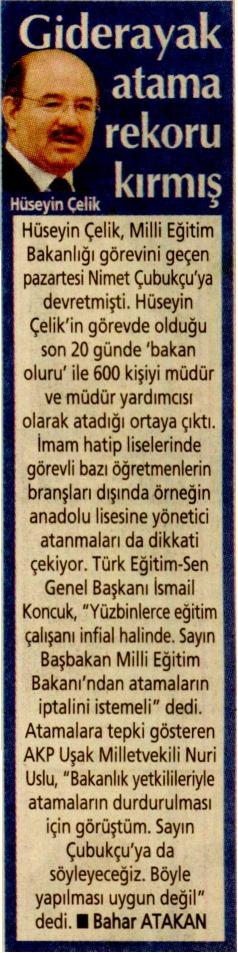 Giderayak Atama Rekoru Kırmış – Posta Basında TES 10 Mayıs 2009 FacebookTwitterWhatsAppLinkedin A- A A+ Son Haberler Haberler YÖNETİCİ GÖREVLENDİRME YÖNETMELİĞİNE DAVA AÇTIK Türk Eğitim Sen, 30.01.2026 tarih ve 33153 sayılı resmi gazete yayımlanan Milli Eğitim Bakanlığı... 12 Şubat 2026 Haberler IRAK TÜRKMEN EĞİTİMCİLERİNDEN GENEL BAŞKAN TALİP GEYLAN’A ANLAMLI ZİYARET Irak Türkmen Eğitimciler Öğretmen Örgütü Başkanı Ali Gülboy ve beraberindeki heyet, 11 Şubat 2026... 11 Şubat 2026 Haberler ÖZEL EĞİTİM ANAOKULLARINDA GÖREV YAPAN ÖZEL EĞİTİM ÖĞRETMENLERİNE DE HAFTADA 1 SAAT EK DERS... 11 Şubat 2026 Haberler TÜRK EĞİTİM SEN ÜYELERİNE;MEB EKYS 2026 YAZILI SINAVINA HAZIRLIK DUYURUSU 2026 yılı Millî Eğitim Bakanlığı Eğitim Kurumlarına Yönetici Seçme Sınavı (MEB EKYS) kapsamında uygulanacak... 10 Şubat 2026
