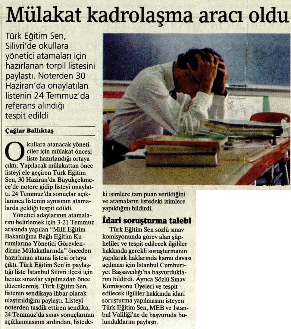 İdari soruşturma Talebi – Birgün Basında TES 28 Temmuz 2017 FacebookTwitterWhatsAppLinkedin A- A A+ Son Haberler Haberler TÜRK DÜNYASINDA EĞİTİM ALANINDA İŞBİRLİĞİ SÜRÜYOR Türk Eğitim-Sen ve Uluslararası Avrasya Eğitim Sendikaları Birliği Genel Başkanı Talip Geylan ile Kırgızistan... 19 Şubat 2026 Tüm Haberler NORM FAZLASI RE’SEN ATAMADA YENİ BİR YÜRÜTMEYİ DURDURMA KARARI Sendikamız üyesinin, norm kadro fazlası olduğu gerekçesiyle re’sen, aile birliği mazeretine uygun olmayan bir... 17 Şubat 2026 Haberler GENEL BAŞKAN TALİP GEYLAN GÜVEN TAZELEDİ 15 Şubat 2026 tarihinde Ankara’da yapılan Türk Eğitim-Sen 8. Olağan Merkez Genel Kurulu'nda mevcut... 15 Şubat 2026 Haberler 8. OLAĞAN MERKEZ GENEL KURULUMUZ COŞKU İLE GERÇEKLEŞTİ Türk Eğitim Sen 8. Olağan Merkez Genel Kurulu, 15 Şubat 2026 tarihinde Ankara’da coşku... 15 Şubat 2026