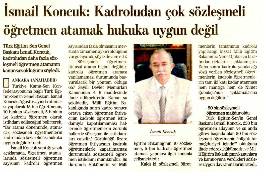 Kadroludan çok Sözleşmeli Öğretmen Atamak Hukuka Uygun Değil – Küresel Ana Haber Basında TES 10 Ağustos 2009 FacebookTwitterWhatsAppLinkedin A- A A+ Son Haberler Haberler GENEL BAŞKAN TALİP GEYLAN GÜVEN TAZELEDİ 15 Şubat 2026 tarihinde Ankara’da yapılan Türk Eğitim-Sen 8. Olağan Merkez Genel Kurulu'nda mevcut... 15 Şubat 2026 Haberler 8. OLAĞAN MERKEZ GENEL KURULUMUZ COŞKU İLE GERÇEKLEŞTİ Türk Eğitim Sen 8. Olağan Merkez Genel Kurulu, 15 Şubat 2026 tarihinde Ankara’da coşku... 15 Şubat 2026 Haberler YÖNETİCİ GÖREVLENDİRME YÖNETMELİĞİNE DAVA AÇTIK Türk Eğitim Sen, 30.01.2026 tarih ve 33153 sayılı resmi gazete yayımlanan Milli Eğitim Bakanlığı... 12 Şubat 2026 Haberler IRAK TÜRKMEN EĞİTİMCİLERİNDEN GENEL BAŞKAN TALİP GEYLAN’A ANLAMLI ZİYARET Irak Türkmen Eğitimciler Öğretmen Örgütü Başkanı Ali Gülboy ve beraberindeki heyet, 11 Şubat 2026... 11 Şubat 2026