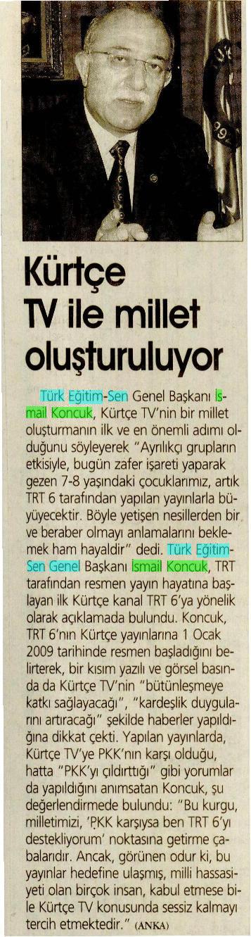 Kürtçe TV İle Millet Oluşturuluyor – Yeniçağ Basında TES 5 Ocak 2009 FacebookTwitterWhatsAppLinkedin A- A A+ Son Haberler Haberler YÖNETİCİ GÖREVLENDİRME YÖNETMELİĞİNE DAVA AÇTIK Türk Eğitim Sen, 30.01.2026 tarih ve 33153 sayılı resmi gazete yayımlanan Milli Eğitim Bakanlığı... 12 Şubat 2026 Haberler IRAK TÜRKMEN EĞİTİMCİLERİNDEN GENEL BAŞKAN TALİP GEYLAN’A ANLAMLI ZİYARET Irak Türkmen Eğitimciler Öğretmen Örgütü Başkanı Ali Gülboy ve beraberindeki heyet, 11 Şubat 2026... 11 Şubat 2026 Haberler ÖZEL EĞİTİM ANAOKULLARINDA GÖREV YAPAN ÖZEL EĞİTİM ÖĞRETMENLERİNE DE HAFTADA 1 SAAT EK DERS... 11 Şubat 2026 Haberler TÜRK EĞİTİM SEN ÜYELERİNE;MEB EKYS 2026 YAZILI SINAVINA HAZIRLIK DUYURUSU 2026 yılı Millî Eğitim Bakanlığı Eğitim Kurumlarına Yönetici Seçme Sınavı (MEB EKYS) kapsamında uygulanacak... 10 Şubat 2026