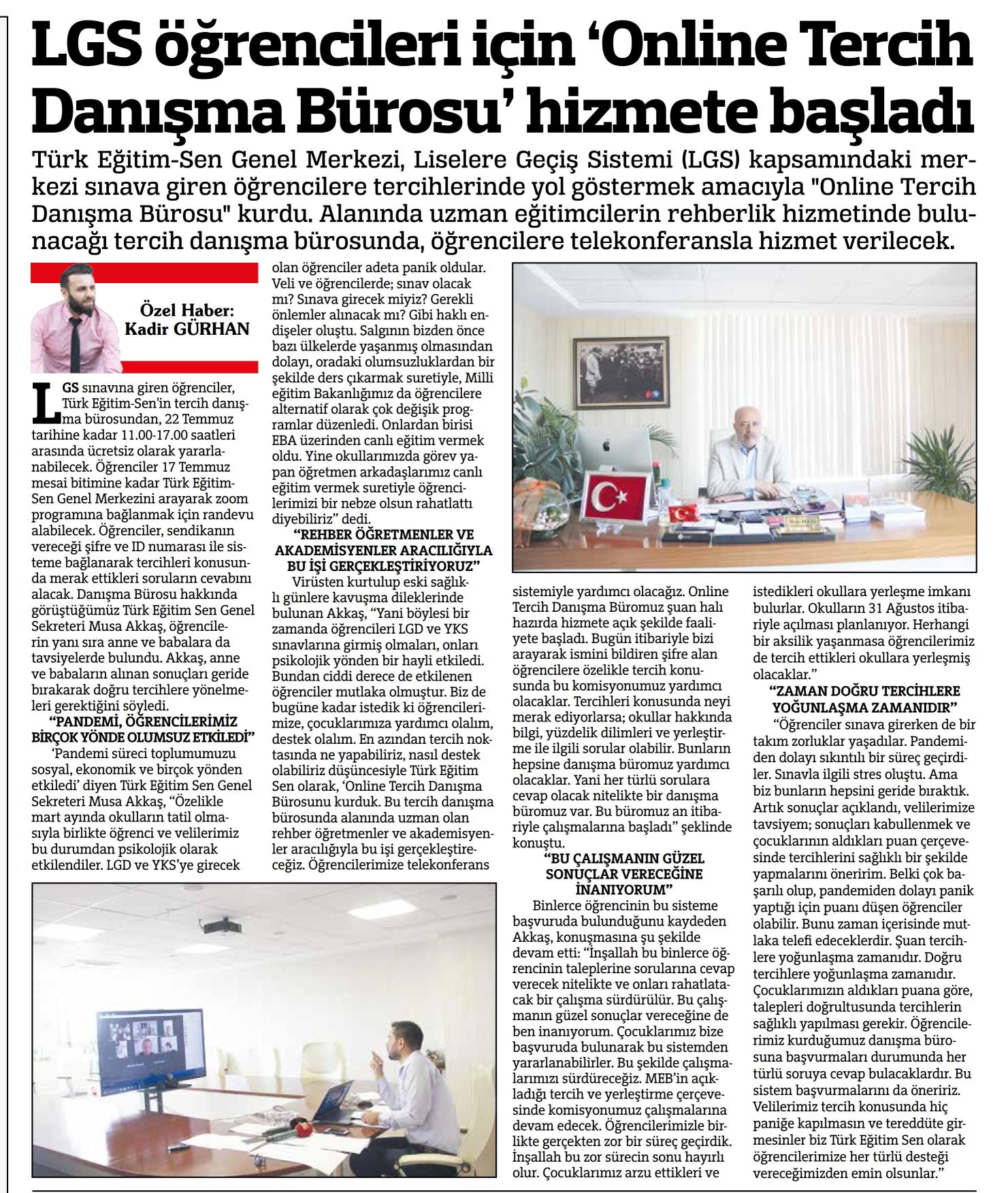 LGS Öğrencileri İçin Online Tercih Danışma Bürosu Hizmete Başladı – Güçlü Anadolu