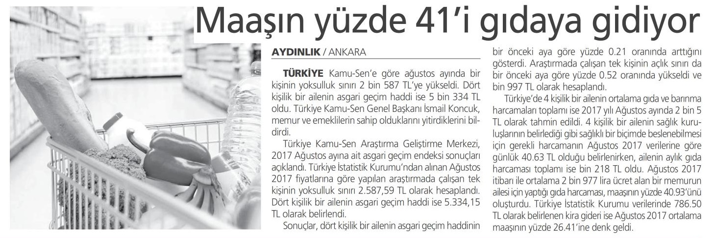 Maaşın Yüzde 41`i Gıdaya Gidiyor – Aydınlık