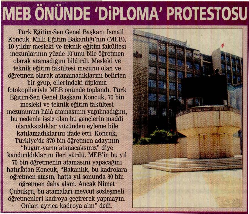 MEB Önünde Diploma Protestosu – Posta Ankara