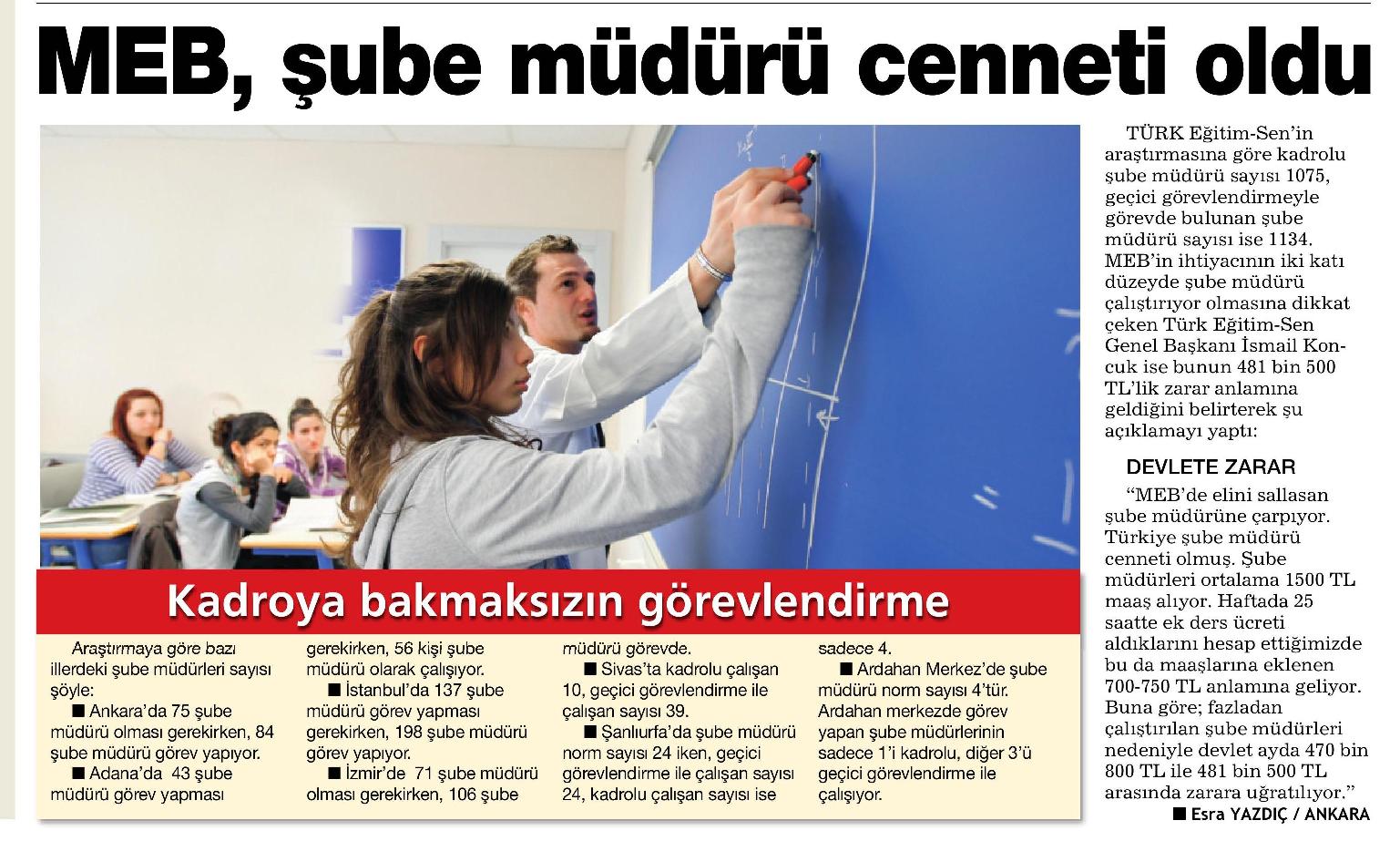 MEB, Şube Müdürü Cenneti Oldu – Habertürk Basında TES 17 Mayıs 2010 FacebookTwitterWhatsAppLinkedin A- A A+ Son Haberler Haberler TÜRK DÜNYASINDA EĞİTİM ALANINDA İŞBİRLİĞİ SÜRÜYOR Türk Eğitim-Sen ve Uluslararası Avrasya Eğitim Sendikaları Birliği Genel Başkanı Talip Geylan ile Kırgızistan... 19 Şubat 2026 Tüm Haberler NORM FAZLASI RE’SEN ATAMADA YENİ BİR YÜRÜTMEYİ DURDURMA KARARI Sendikamız üyesinin, norm kadro fazlası olduğu gerekçesiyle re’sen, aile birliği mazeretine uygun olmayan bir... 17 Şubat 2026 Haberler GENEL BAŞKAN TALİP GEYLAN GÜVEN TAZELEDİ 15 Şubat 2026 tarihinde Ankara’da yapılan Türk Eğitim-Sen 8. Olağan Merkez Genel Kurulu'nda mevcut... 15 Şubat 2026 Haberler 8. OLAĞAN MERKEZ GENEL KURULUMUZ COŞKU İLE GERÇEKLEŞTİ Türk Eğitim Sen 8. Olağan Merkez Genel Kurulu, 15 Şubat 2026 tarihinde Ankara’da coşku... 15 Şubat 2026