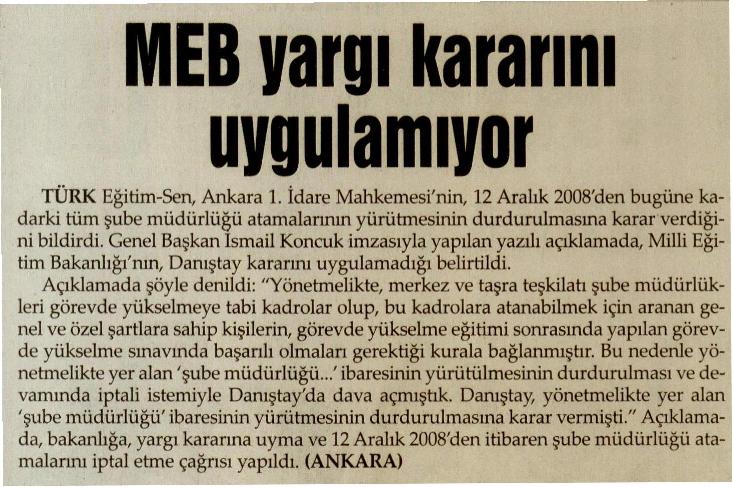 MEB Yargı Kararını Uygulamıyor – Evrensel