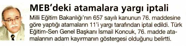 MEB’deki Atamalara Yargı İptali – Habertürk Basında TES 16 Ağustos 2009 FacebookTwitterWhatsAppLinkedin A- A A+ Son Haberler Haberler GENEL BAŞKAN TALİP GEYLAN GÜVEN TAZELEDİ 15 Şubat 2026 tarihinde Ankara’da yapılan Türk Eğitim-Sen 8. Olağan Merkez Genel Kurulu'nda mevcut... 15 Şubat 2026 Haberler 8. OLAĞAN MERKEZ GENEL KURULUMUZ COŞKU İLE GERÇEKLEŞTİ Türk Eğitim Sen 8. Olağan Merkez Genel Kurulu, 15 Şubat 2026 tarihinde Ankara’da coşku... 15 Şubat 2026 Haberler YÖNETİCİ GÖREVLENDİRME YÖNETMELİĞİNE DAVA AÇTIK Türk Eğitim Sen, 30.01.2026 tarih ve 33153 sayılı resmi gazete yayımlanan Milli Eğitim Bakanlığı... 12 Şubat 2026 Haberler IRAK TÜRKMEN EĞİTİMCİLERİNDEN GENEL BAŞKAN TALİP GEYLAN’A ANLAMLI ZİYARET Irak Türkmen Eğitimciler Öğretmen Örgütü Başkanı Ali Gülboy ve beraberindeki heyet, 11 Şubat 2026... 11 Şubat 2026