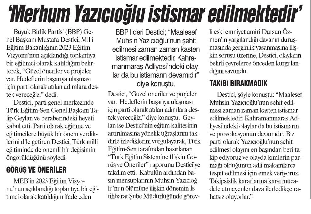 Merhum Yazıoğlu İstismar Edilmektedir – Dokuz Sütun