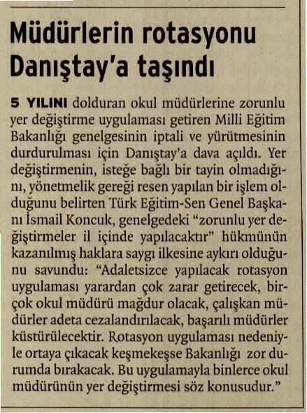 Müdürlerin Rotasyonu Danıştay’a Taşındı – Birgün Basında TES 25 Temmuz 2010 FacebookTwitterWhatsAppLinkedin A- A A+ Son Haberler Haberler TÜRK DÜNYASINDA EĞİTİM ALANINDA İŞBİRLİĞİ SÜRÜYOR Türk Eğitim-Sen ve Uluslararası Avrasya Eğitim Sendikaları Birliği Genel Başkanı Talip Geylan ile Kırgızistan... 19 Şubat 2026 Tüm Haberler NORM FAZLASI RE’SEN ATAMADA YENİ BİR YÜRÜTMEYİ DURDURMA KARARI Sendikamız üyesinin, norm kadro fazlası olduğu gerekçesiyle re’sen, aile birliği mazeretine uygun olmayan bir... 17 Şubat 2026 Haberler GENEL BAŞKAN TALİP GEYLAN GÜVEN TAZELEDİ 15 Şubat 2026 tarihinde Ankara’da yapılan Türk Eğitim-Sen 8. Olağan Merkez Genel Kurulu'nda mevcut... 15 Şubat 2026 Haberler 8. OLAĞAN MERKEZ GENEL KURULUMUZ COŞKU İLE GERÇEKLEŞTİ Türk Eğitim Sen 8. Olağan Merkez Genel Kurulu, 15 Şubat 2026 tarihinde Ankara’da coşku... 15 Şubat 2026