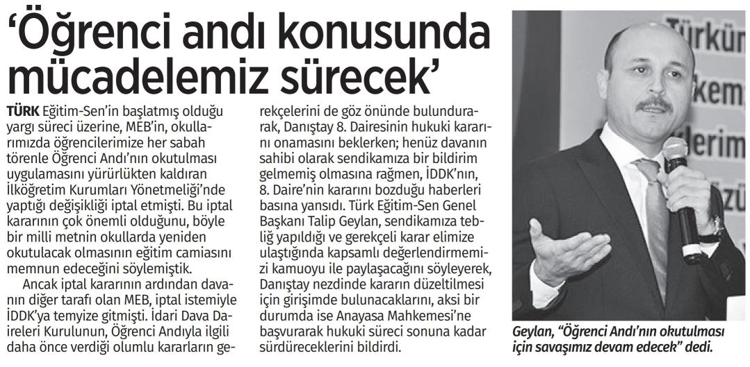 Öğrenci Andı Konusunda Mücadelemiz Sürecek – Türkgün