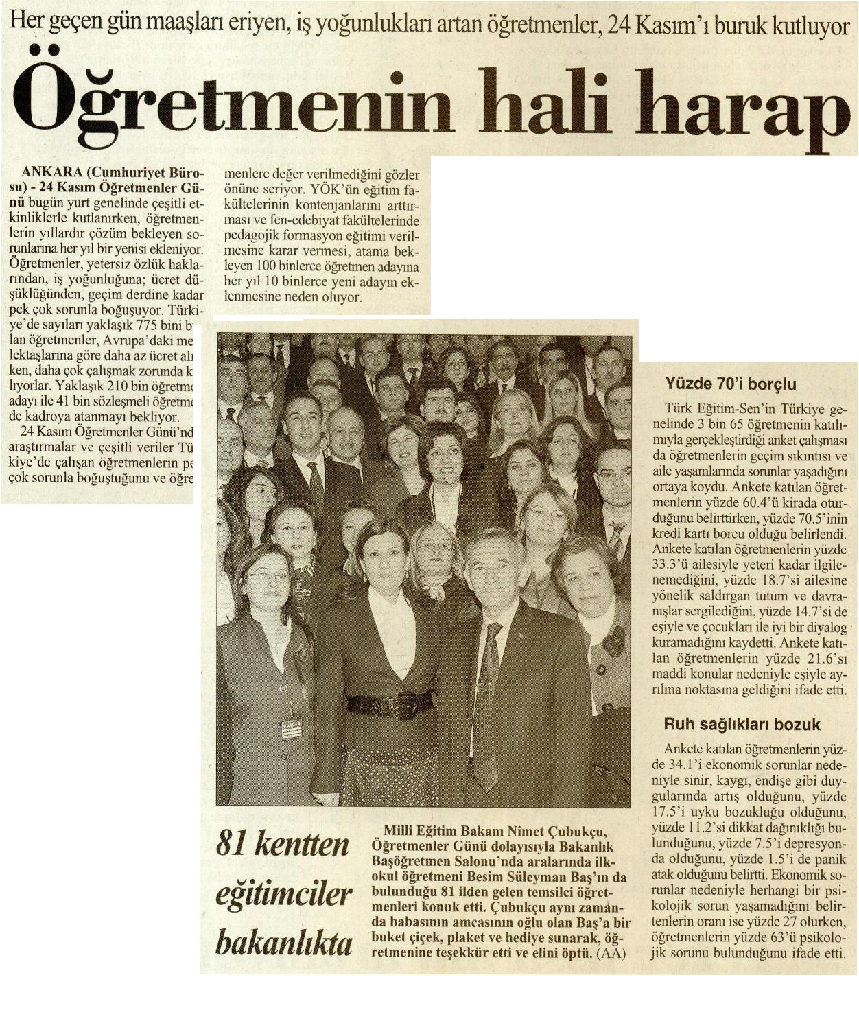 Öğretmenin Hali Harap – Cumhuriyet Basında TES 24 Kasım 2009 FacebookTwitterWhatsAppLinkedin A- A A+ Son Haberler Tüm Haberler NORM FAZLASI RE’SEN ATAMADA YENİ BİR YÜRÜTMEYİ DURDURMA KARARI Sendikamız üyesinin, norm kadro fazlası olduğu gerekçesiyle re’sen, aile birliği mazeretine uygun olmayan bir... 17 Şubat 2026 Haberler GENEL BAŞKAN TALİP GEYLAN GÜVEN TAZELEDİ 15 Şubat 2026 tarihinde Ankara’da yapılan Türk Eğitim-Sen 8. Olağan Merkez Genel Kurulu'nda mevcut... 15 Şubat 2026 Haberler 8. OLAĞAN MERKEZ GENEL KURULUMUZ COŞKU İLE GERÇEKLEŞTİ Türk Eğitim Sen 8. Olağan Merkez Genel Kurulu, 15 Şubat 2026 tarihinde Ankara’da coşku... 15 Şubat 2026 Haberler YÖNETİCİ GÖREVLENDİRME YÖNETMELİĞİNE DAVA AÇTIK Türk Eğitim Sen, 30.01.2026 tarih ve 33153 sayılı resmi gazete yayımlanan Milli Eğitim Bakanlığı... 12 Şubat 2026