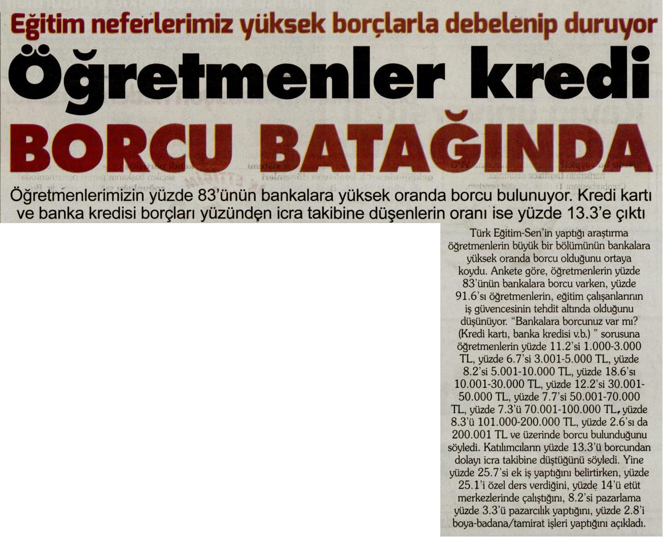Öğretmenler Kredi Borcu Batağında – Korkusuz Basında TES 23 Kasım 2016 FacebookTwitterWhatsAppLinkedin A- A A+ Son Haberler Haberler GENEL BAŞKAN TALİP GEYLAN GÜVEN TAZELEDİ 15 Şubat 2026 tarihinde Ankara’da yapılan Türk Eğitim-Sen 8. Olağan Merkez Genel Kurulu'nda mevcut... 15 Şubat 2026 Haberler 8. OLAĞAN MERKEZ GENEL KURULUMUZ COŞKU İLE GERÇEKLEŞTİ Türk Eğitim Sen 8. Olağan Merkez Genel Kurulu, 15 Şubat 2026 tarihinde Ankara’da coşku... 15 Şubat 2026 Haberler YÖNETİCİ GÖREVLENDİRME YÖNETMELİĞİNE DAVA AÇTIK Türk Eğitim Sen, 30.01.2026 tarih ve 33153 sayılı resmi gazete yayımlanan Milli Eğitim Bakanlığı... 12 Şubat 2026 Haberler IRAK TÜRKMEN EĞİTİMCİLERİNDEN GENEL BAŞKAN TALİP GEYLAN’A ANLAMLI ZİYARET Irak Türkmen Eğitimciler Öğretmen Örgütü Başkanı Ali Gülboy ve beraberindeki heyet, 11 Şubat 2026... 11 Şubat 2026