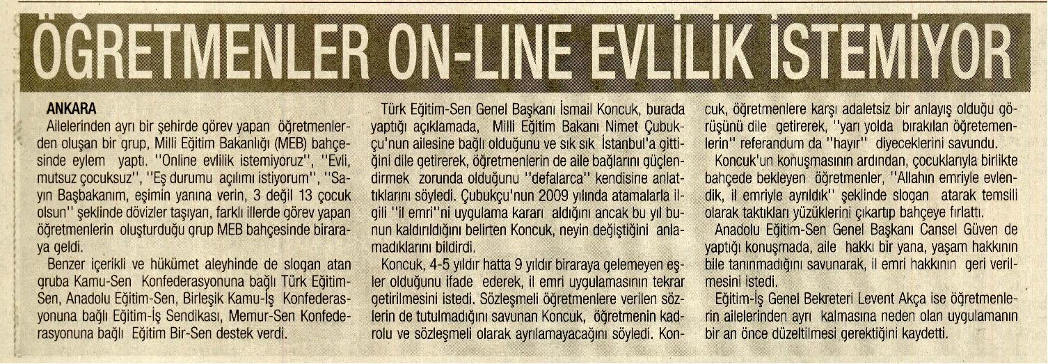 Öğretmenler On-Line Evlilik İstemiyor – Vakit