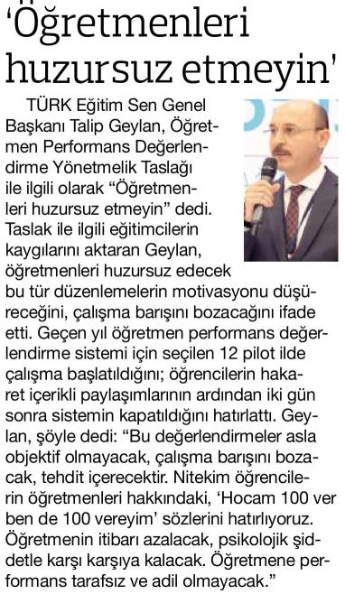 Öğretmenleri Huzursuz Etmeyin – Habertürk Basında TES 1 Mart 2018 FacebookTwitterWhatsAppLinkedin A- A A+ Son Haberler Tüm Haberler NORM FAZLASI RE’SEN ATAMADA YENİ BİR YÜRÜTMEYİ DURDURMA KARARI Sendikamız üyesinin, norm kadro fazlası olduğu gerekçesiyle re’sen, aile birliği mazeretine uygun olmayan bir... 17 Şubat 2026 Haberler GENEL BAŞKAN TALİP GEYLAN GÜVEN TAZELEDİ 15 Şubat 2026 tarihinde Ankara’da yapılan Türk Eğitim-Sen 8. Olağan Merkez Genel Kurulu'nda mevcut... 15 Şubat 2026 Haberler 8. OLAĞAN MERKEZ GENEL KURULUMUZ COŞKU İLE GERÇEKLEŞTİ Türk Eğitim Sen 8. Olağan Merkez Genel Kurulu, 15 Şubat 2026 tarihinde Ankara’da coşku... 15 Şubat 2026 Haberler YÖNETİCİ GÖREVLENDİRME YÖNETMELİĞİNE DAVA AÇTIK Türk Eğitim Sen, 30.01.2026 tarih ve 33153 sayılı resmi gazete yayımlanan Milli Eğitim Bakanlığı... 12 Şubat 2026