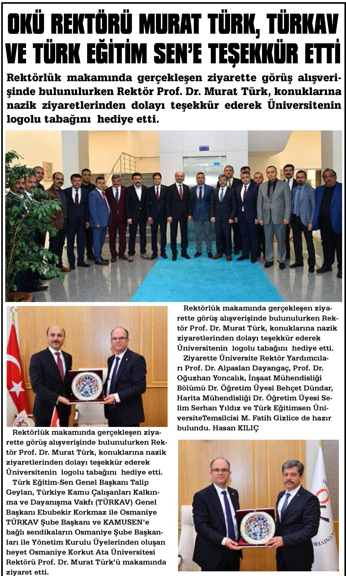 OKÜ Rektörü Murat Türk, TÜRKAV ve Türk Eğitim-Sen`e Teşekkür Etti. – Osmaniye Olay Basında TES 19 Nisan 2019 FacebookTwitterWhatsAppLinkedin A- A A+ Son Haberler Tüm Haberler NORM FAZLASI RE’SEN ATAMADA YENİ BİR YÜRÜTMEYİ DURDURMA KARARI Sendikamız üyesinin, norm kadro fazlası olduğu gerekçesiyle re’sen, aile birliği mazeretine uygun olmayan bir... 17 Şubat 2026 Haberler GENEL BAŞKAN TALİP GEYLAN GÜVEN TAZELEDİ 15 Şubat 2026 tarihinde Ankara’da yapılan Türk Eğitim-Sen 8. Olağan Merkez Genel Kurulu'nda mevcut... 15 Şubat 2026 Haberler 8. OLAĞAN MERKEZ GENEL KURULUMUZ COŞKU İLE GERÇEKLEŞTİ Türk Eğitim Sen 8. Olağan Merkez Genel Kurulu, 15 Şubat 2026 tarihinde Ankara’da coşku... 15 Şubat 2026 Haberler YÖNETİCİ GÖREVLENDİRME YÖNETMELİĞİNE DAVA AÇTIK Türk Eğitim Sen, 30.01.2026 tarih ve 33153 sayılı resmi gazete yayımlanan Milli Eğitim Bakanlığı... 12 Şubat 2026