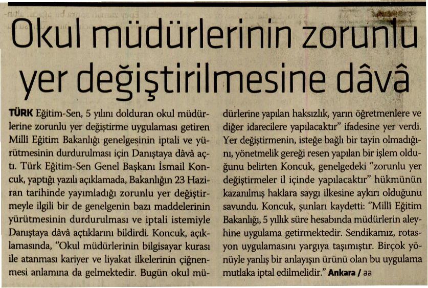 Okul Müdürlerinin Zorunlu Yer Değiştirmesine Dava – Yeniasya