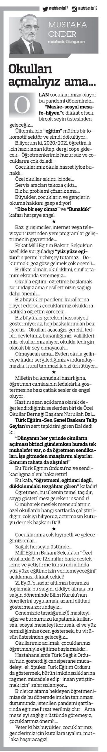 Okulları Açmalıyız Ama… – Türkgün