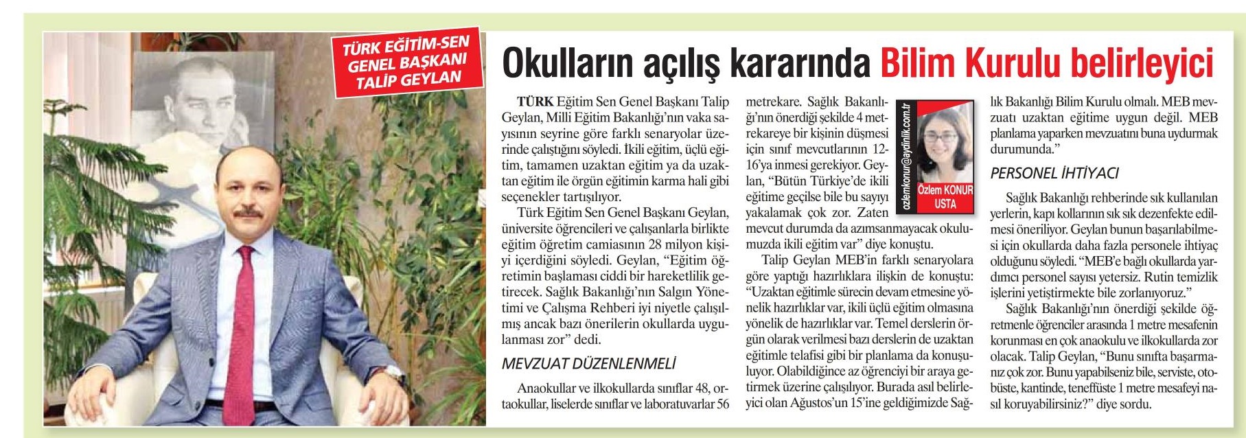 Okulların Açılış Kararında Bilim Kurulu Belirleyici – Aydınlık Basında TES 10 Temmuz 2020 FacebookTwitterWhatsAppLinkedin A- A A+ Son Haberler Haberler YÖNETİCİ GÖREVLENDİRME YÖNETMELİĞİNE DAVA AÇTIK Türk Eğitim Sen, 30.01.2026 tarih ve 33153 sayılı resmi gazete yayımlanan Milli Eğitim Bakanlığı... 12 Şubat 2026 Haberler IRAK TÜRKMEN EĞİTİMCİLERİNDEN GENEL BAŞKAN TALİP GEYLAN’A ANLAMLI ZİYARET Irak Türkmen Eğitimciler Öğretmen Örgütü Başkanı Ali Gülboy ve beraberindeki heyet, 11 Şubat 2026... 11 Şubat 2026 Haberler ÖZEL EĞİTİM ANAOKULLARINDA GÖREV YAPAN ÖZEL EĞİTİM ÖĞRETMENLERİNE DE HAFTADA 1 SAAT EK DERS... 11 Şubat 2026 Haberler TÜRK EĞİTİM SEN ÜYELERİNE;MEB EKYS 2026 YAZILI SINAVINA HAZIRLIK DUYURUSU 2026 yılı Millî Eğitim Bakanlığı Eğitim Kurumlarına Yönetici Seçme Sınavı (MEB EKYS) kapsamında uygulanacak... 10 Şubat 2026