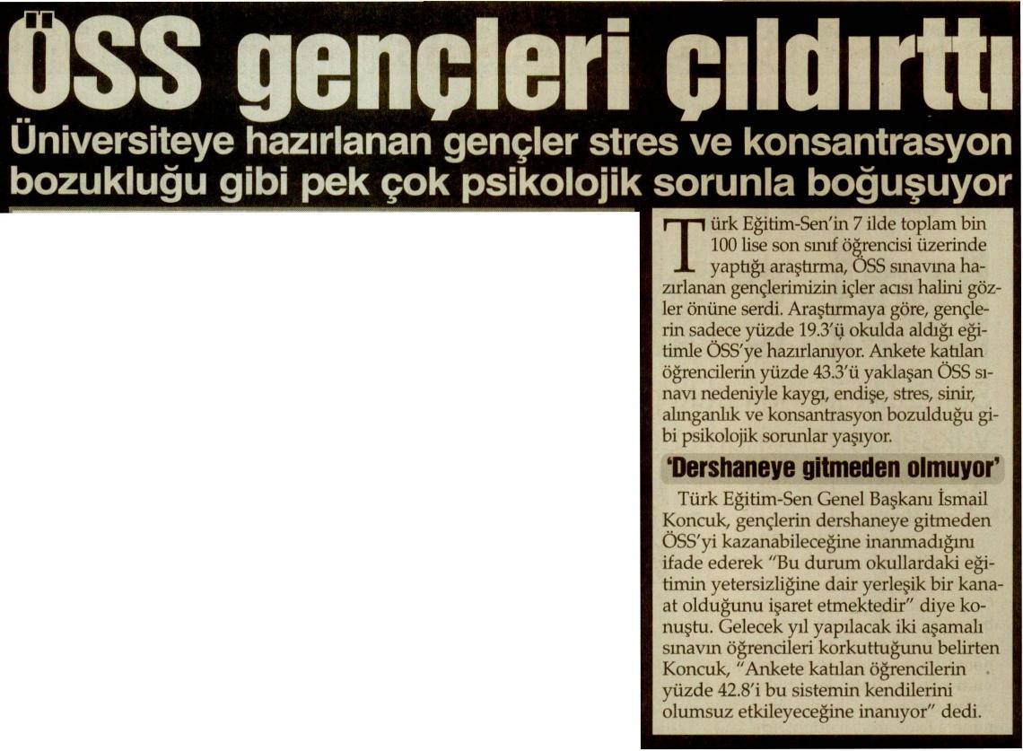 ÖSS Gençleri Çıldırttı – Sözcü Basında TES 1 Haziran 2009 FacebookTwitterWhatsAppLinkedin A- A A+ Son Haberler Haberler YÖNETİCİ GÖREVLENDİRME YÖNETMELİĞİNE DAVA AÇTIK Türk Eğitim Sen, 30.01.2026 tarih ve 33153 sayılı resmi gazete yayımlanan Milli Eğitim Bakanlığı... 12 Şubat 2026 Haberler IRAK TÜRKMEN EĞİTİMCİLERİNDEN GENEL BAŞKAN TALİP GEYLAN’A ANLAMLI ZİYARET Irak Türkmen Eğitimciler Öğretmen Örgütü Başkanı Ali Gülboy ve beraberindeki heyet, 11 Şubat 2026... 11 Şubat 2026 Haberler ÖZEL EĞİTİM ANAOKULLARINDA GÖREV YAPAN ÖZEL EĞİTİM ÖĞRETMENLERİNE DE HAFTADA 1 SAAT EK DERS... 11 Şubat 2026 Haberler TÜRK EĞİTİM SEN ÜYELERİNE;MEB EKYS 2026 YAZILI SINAVINA HAZIRLIK DUYURUSU 2026 yılı Millî Eğitim Bakanlığı Eğitim Kurumlarına Yönetici Seçme Sınavı (MEB EKYS) kapsamında uygulanacak... 10 Şubat 2026