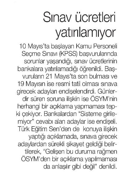 Sınav Ücretleri Yatırılamıyor – Yeniçağ Basında TES 20 Mayıs 2010 FacebookTwitterWhatsAppLinkedin A- A A+ Son Haberler Haberler TÜRK DÜNYASINDA EĞİTİM ALANINDA İŞBİRLİĞİ SÜRÜYOR Türk Eğitim-Sen ve Uluslararası Avrasya Eğitim Sendikaları Birliği Genel Başkanı Talip Geylan ile Kırgızistan... 19 Şubat 2026 Tüm Haberler NORM FAZLASI RE’SEN ATAMADA YENİ BİR YÜRÜTMEYİ DURDURMA KARARI Sendikamız üyesinin, norm kadro fazlası olduğu gerekçesiyle re’sen, aile birliği mazeretine uygun olmayan bir... 17 Şubat 2026 Haberler GENEL BAŞKAN TALİP GEYLAN GÜVEN TAZELEDİ 15 Şubat 2026 tarihinde Ankara’da yapılan Türk Eğitim-Sen 8. Olağan Merkez Genel Kurulu'nda mevcut... 15 Şubat 2026 Haberler 8. OLAĞAN MERKEZ GENEL KURULUMUZ COŞKU İLE GERÇEKLEŞTİ Türk Eğitim Sen 8. Olağan Merkez Genel Kurulu, 15 Şubat 2026 tarihinde Ankara’da coşku... 15 Şubat 2026