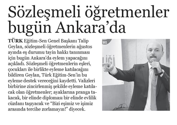 Sözleşmeli Öğretmenler Bugün Ankara`da – Türkgün Basında TES 26 Temmuz 2019 FacebookTwitterWhatsAppLinkedin A- A A+ Son Haberler Haberler GENEL BAŞKAN TALİP GEYLAN GÜVEN TAZELEDİ 15 Şubat 2026 tarihinde Ankara’da yapılan Türk Eğitim-Sen 8. Olağan Merkez Genel Kurulu'nda mevcut... 15 Şubat 2026 Haberler 8. OLAĞAN MERKEZ GENEL KURULUMUZ COŞKU İLE GERÇEKLEŞTİ Türk Eğitim Sen 8. Olağan Merkez Genel Kurulu, 15 Şubat 2026 tarihinde Ankara’da coşku... 15 Şubat 2026 Haberler YÖNETİCİ GÖREVLENDİRME YÖNETMELİĞİNE DAVA AÇTIK Türk Eğitim Sen, 30.01.2026 tarih ve 33153 sayılı resmi gazete yayımlanan Milli Eğitim Bakanlığı... 12 Şubat 2026 Haberler IRAK TÜRKMEN EĞİTİMCİLERİNDEN GENEL BAŞKAN TALİP GEYLAN’A ANLAMLI ZİYARET Irak Türkmen Eğitimciler Öğretmen Örgütü Başkanı Ali Gülboy ve beraberindeki heyet, 11 Şubat 2026... 11 Şubat 2026