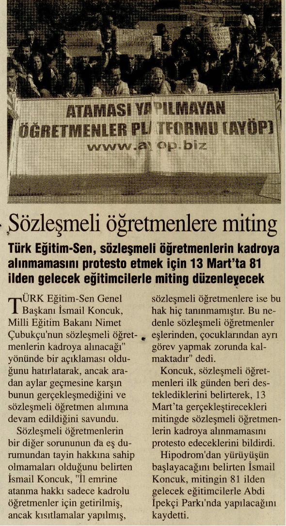 Sözleşmeli Öğretmenlere Miting – Bizim Gazete