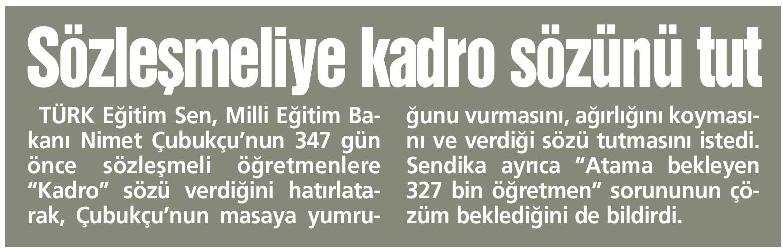 Sözleşmeliye Kadro Sözünü Tut – Güneş