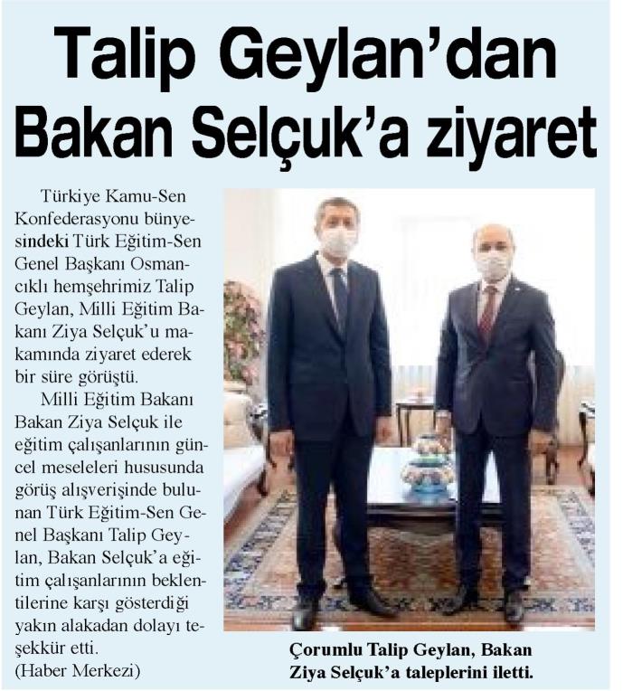 Talip Geylan`dan Bakan Selçuk`a Ziyaret – Çorum Haber Basında TES 1 Temmuz 2020 FacebookTwitterWhatsAppLinkedin A- A A+ Son Haberler Haberler YÖNETİCİ GÖREVLENDİRME YÖNETMELİĞİNE DAVA AÇTIK Türk Eğitim Sen, 30.01.2026 tarih ve 33153 sayılı resmi gazete yayımlanan Milli Eğitim Bakanlığı... 12 Şubat 2026 Haberler IRAK TÜRKMEN EĞİTİMCİLERİNDEN GENEL BAŞKAN TALİP GEYLAN’A ANLAMLI ZİYARET Irak Türkmen Eğitimciler Öğretmen Örgütü Başkanı Ali Gülboy ve beraberindeki heyet, 11 Şubat 2026... 11 Şubat 2026 Haberler ÖZEL EĞİTİM ANAOKULLARINDA GÖREV YAPAN ÖZEL EĞİTİM ÖĞRETMENLERİNE DE HAFTADA 1 SAAT EK DERS... 11 Şubat 2026 Haberler TÜRK EĞİTİM SEN ÜYELERİNE;MEB EKYS 2026 YAZILI SINAVINA HAZIRLIK DUYURUSU 2026 yılı Millî Eğitim Bakanlığı Eğitim Kurumlarına Yönetici Seçme Sınavı (MEB EKYS) kapsamında uygulanacak... 10 Şubat 2026