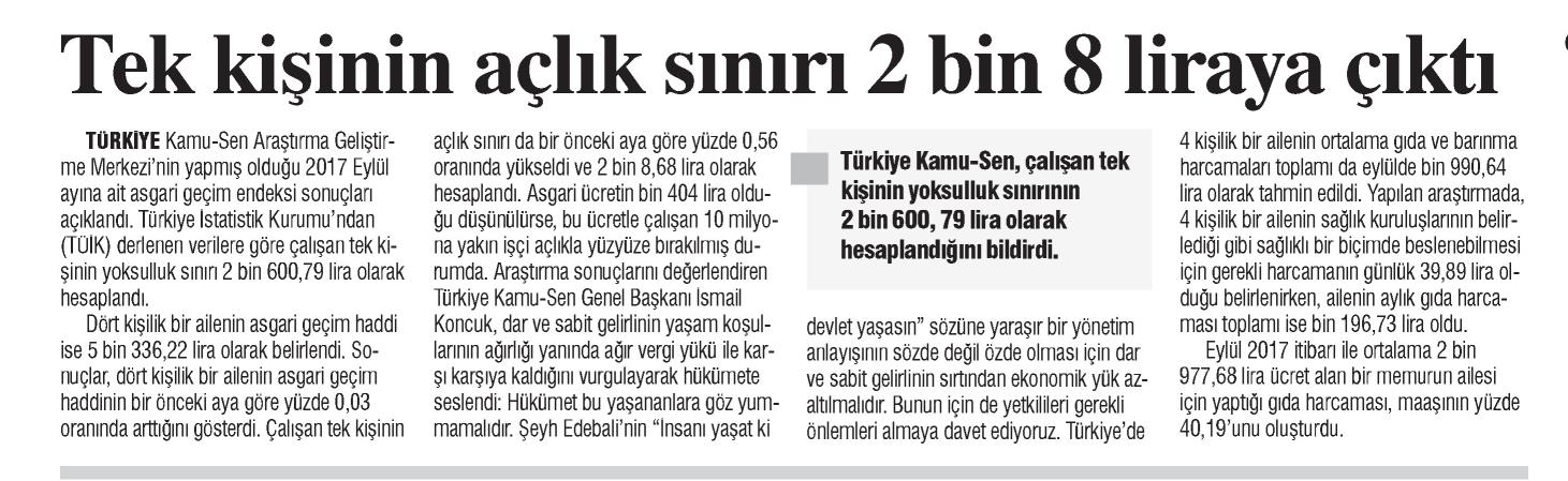 Tek Kişini Açlık Sınırı 2 Bin 8 Liraya Çıktı – Türkiye Yeni Çağ